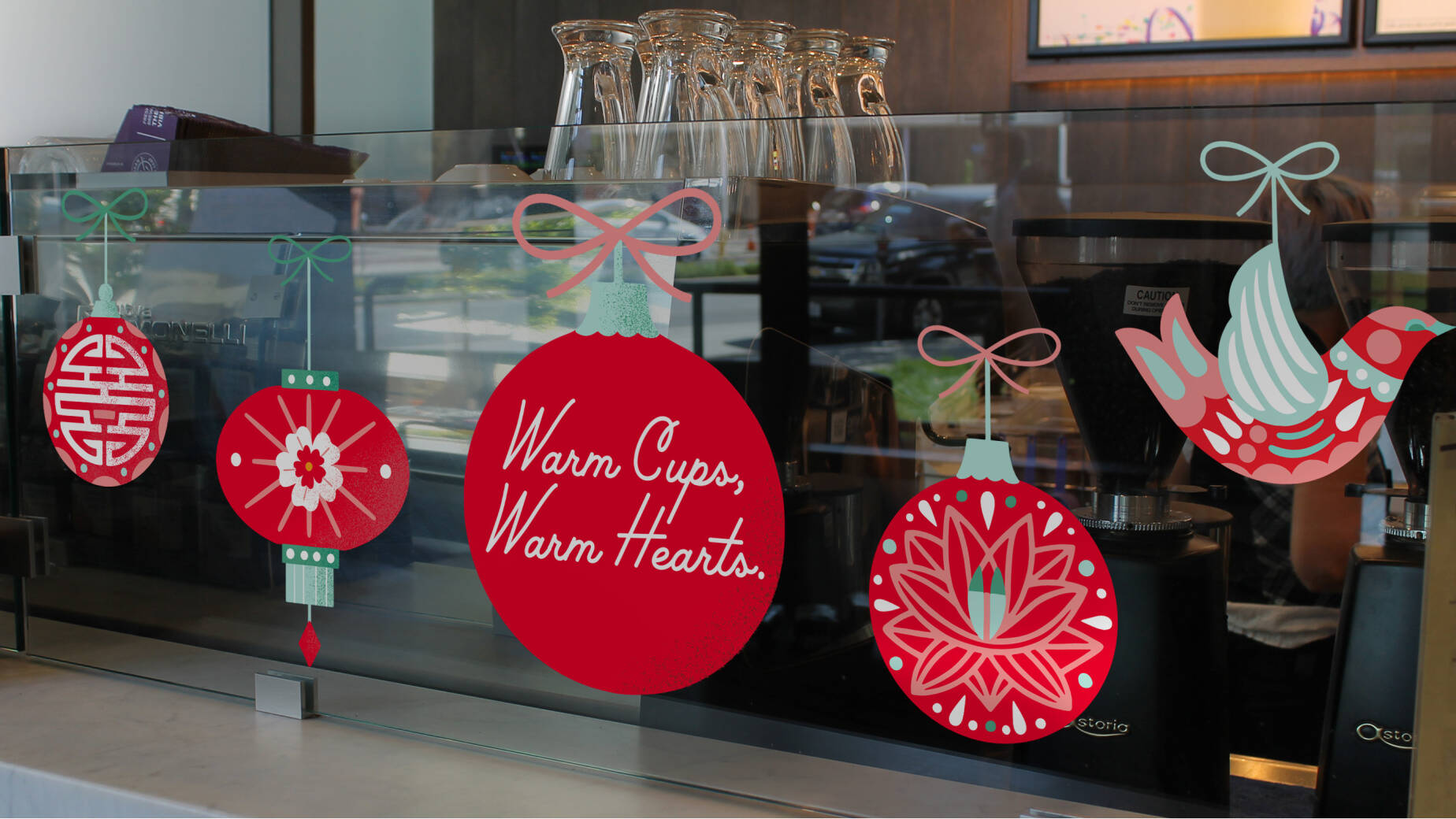 The challenge was to create a holiday expression that could live everywhere, feel festive everywhere, and still feel distinctly Coffee Bean.